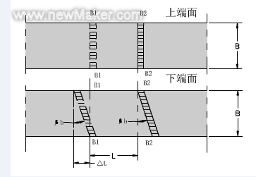 上半圖直尺傳動(dòng)中,一對(duì)齒輪在B2B2和B1B1處進(jìn)入和脫出嚙合,其嚙合區(qū)為L(zhǎng).下半圖斜齒傳動(dòng)中,也是在B2B2處進(jìn)入嚙合,但是在齒寬方向是逐漸進(jìn)入嚙合的,同樣在B1B1處脫離也是逐漸的,這樣其實(shí)際嚙合區(qū)比直齒的嚙合區(qū)增大了ΔL,因此其齒面接觸狀況更好。